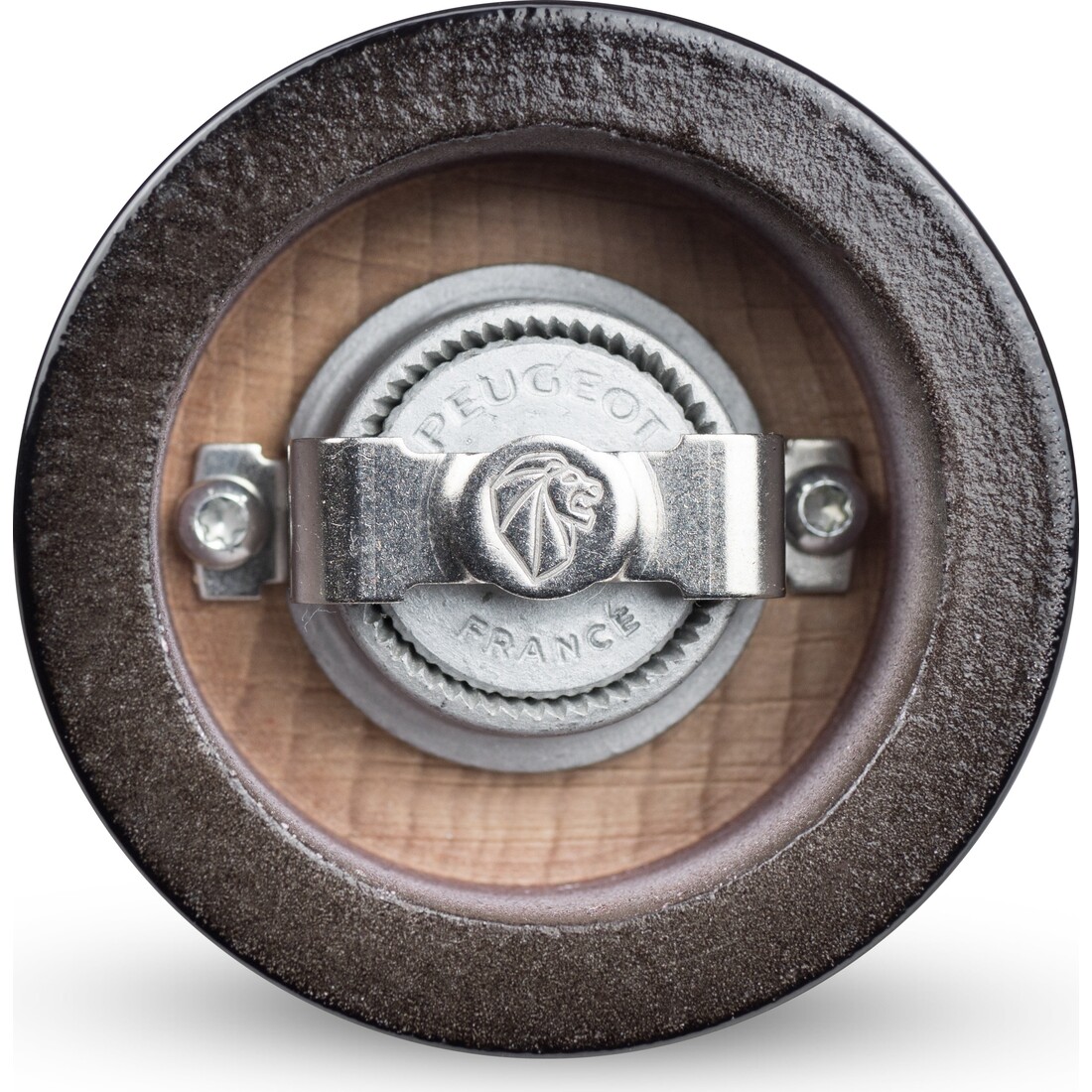 Eén van de favorieten van chefs over de hele wereld zijn de manuele Peugeot Paris pepermolens. Deze molen heeft een afmeting van 18 cm en is gemaakt van zwart beukenhout. De sierknop die zich bovenop de molen bevindt laat je de maalgraad instellen