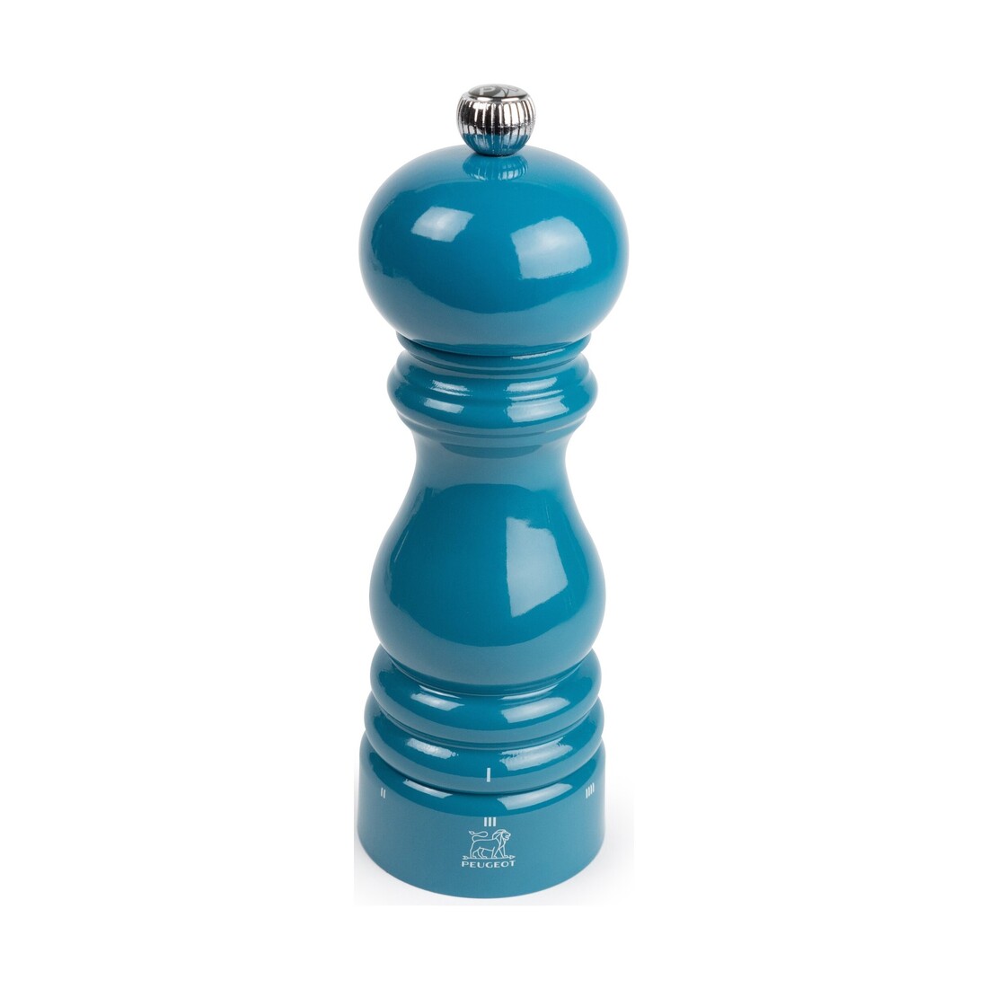 De klassieke Peugeot pepermolen, maar dan in moderne en vernieuwde kleuren. Dat is de Peugeot ParisRama serie. Deze pepermolen is 18 cm hoog en is gemaakt van PEFC hout, in de kleur oceaanblauw. De unieke uitstraling van deze molen maakt van iedere tafel een echt feestje. Maak gerechten op smaak en stel de maalgraad gemakkelijk in, met de vernieuwde u'Select functie. Je maalt iedere peperkorrel zo fijn of grof als jij wilt. Reinig na enige tijd de pepermolen aan de binnenkant met een vochtige doek om de levensduur van deze stijlvolle molen te onderhouden.