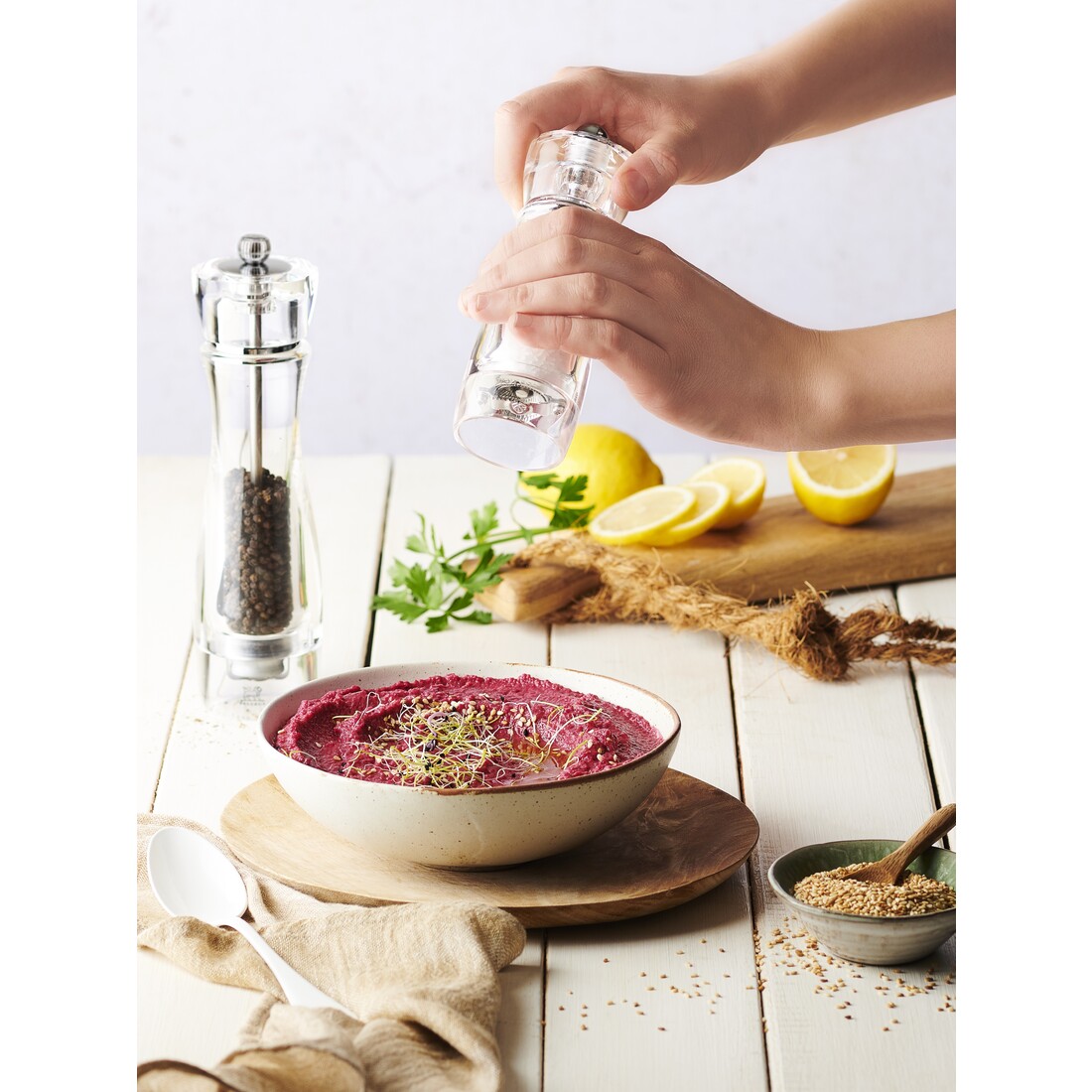 Het vlijmscherpe Peugeot maalwerk is van de hoogste kwaliteit en komt met levenslange garantie. De molen heeft een afmeting van 23 cm en kan als smaakvol duo op tafel gezet worden met de Peugeot Vittel pepermolen.