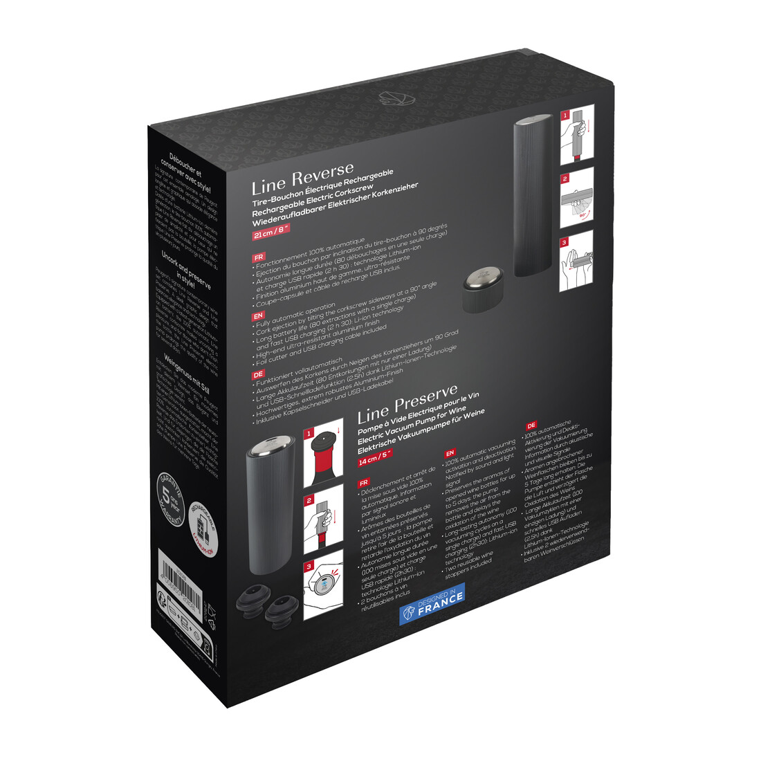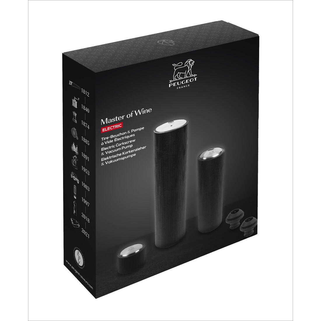 Ontkurk en bewaar je favoriete wijnen in stijl met de Peugeot Master of Wine, een complete set elektrische wijnaccessoires die onmisbaar zijn voor iedere wijnliefhebber. Deze set bevat een elektrische kurkentrekker en een elektrische bewaarpomp.