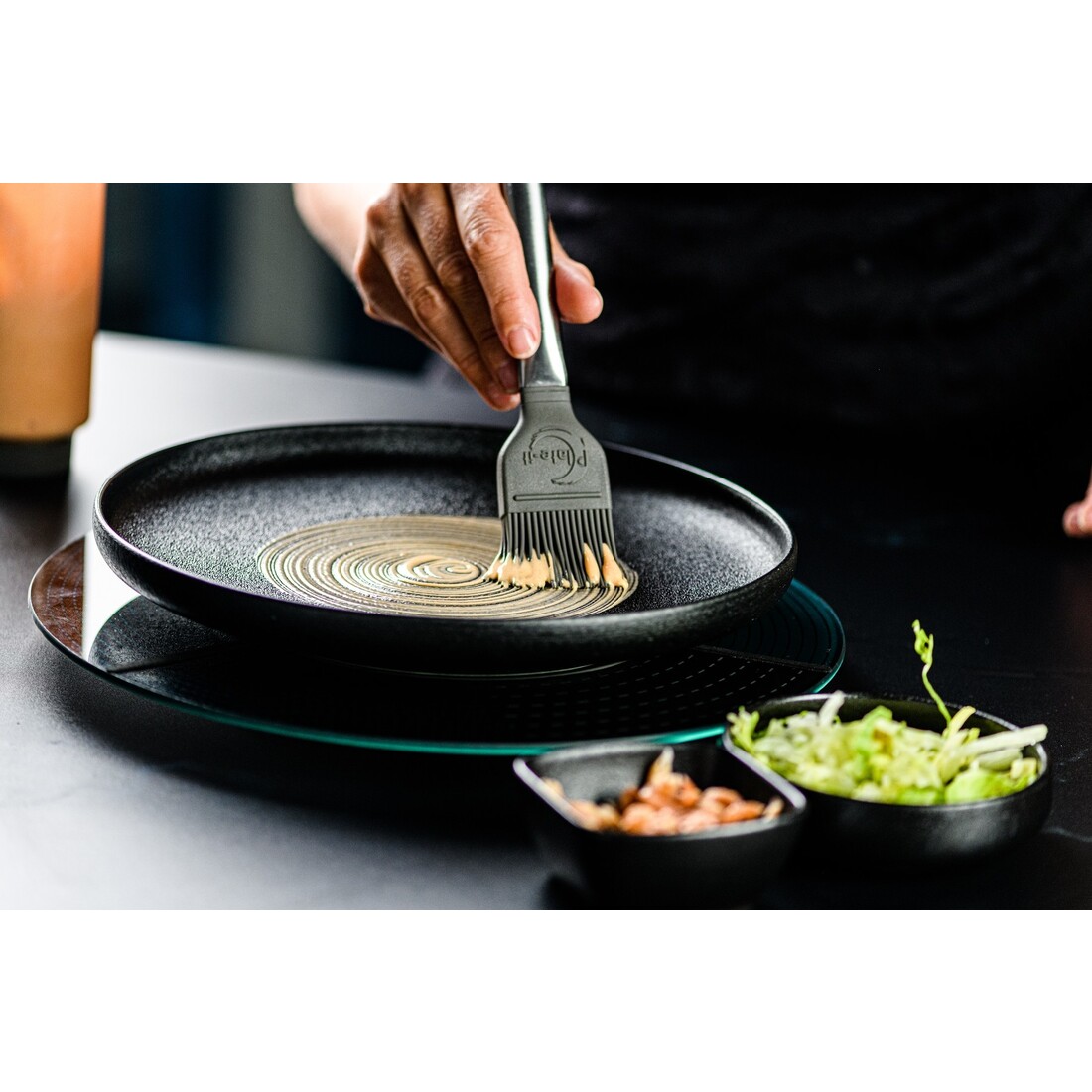Zet in een, letterlijke, handomdraai de mooiste creaties op tafel met het Plate-it draaiplateau. Het plateau is gemaakt van glas en heeft een diameter van 30cm. Dit draaiplateau heb jij nodig om ieder bord professioneel op te maken. Plaats het bord in het midden van de draaitafel en gebruik een kwast, scraper of paletmes om een prachtige ronde opmaak op het bord te creëren. Hiervan gaat het hart van iedere chef toch sneller kloppen? Maak indruk aan tafel en Plate-it like a pro!