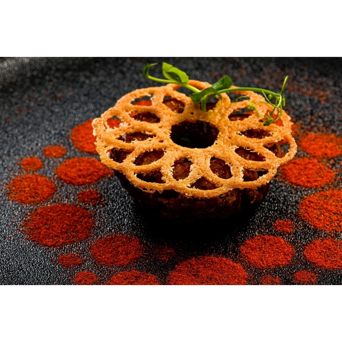 Met de Plate-it circle garneermallen maak je de gaafste creaties. Je brengt jouw favoriete gerechten naar een hoger niveau met deze garneertools. Met de 3-delige set van dit merk kan je alle kanten op. Met 1 sjabloon maak je de beste creaties met producten in poedervorm. Het tweede sjabloon is perfect voor het creëren van gebakken of bevroren decoraties. Het laatste item uit deze set is een siliconen mal, waarmee je op ieder bord een ware eyecatcher creëert. Gebruik de garneertools apart of maak er een prachtige combinatie van op het bord. Plate-it like a pro met de circle garneermallen van Plate-it!