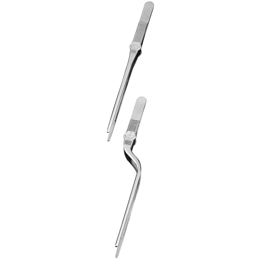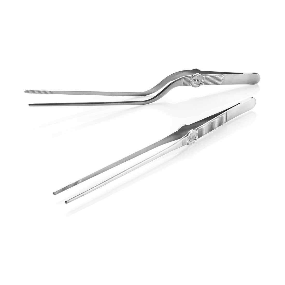 Het afmaken van een gerecht zit hem in de details. Met de Plate-it precisie pincetten decoreer je zelfs de kleinste ingrediënten met gemak. De 2-delige set pincetten is gemaakt van mat roestvrij staal. Om nog dichter bij het opgemaakte bord te komen zit er een knik in een van de pincetten, dit zorgt voor extra precisie. Zelfs de lastigste hoeken kan je met deze pincetten bereiken. Je maakt het gerecht gemakkelijk af met een professionele uitstraling. Geduld en passie staan centraal als echte (thuis)kok. Werk nauwkeurig en Plate-it like a pro!