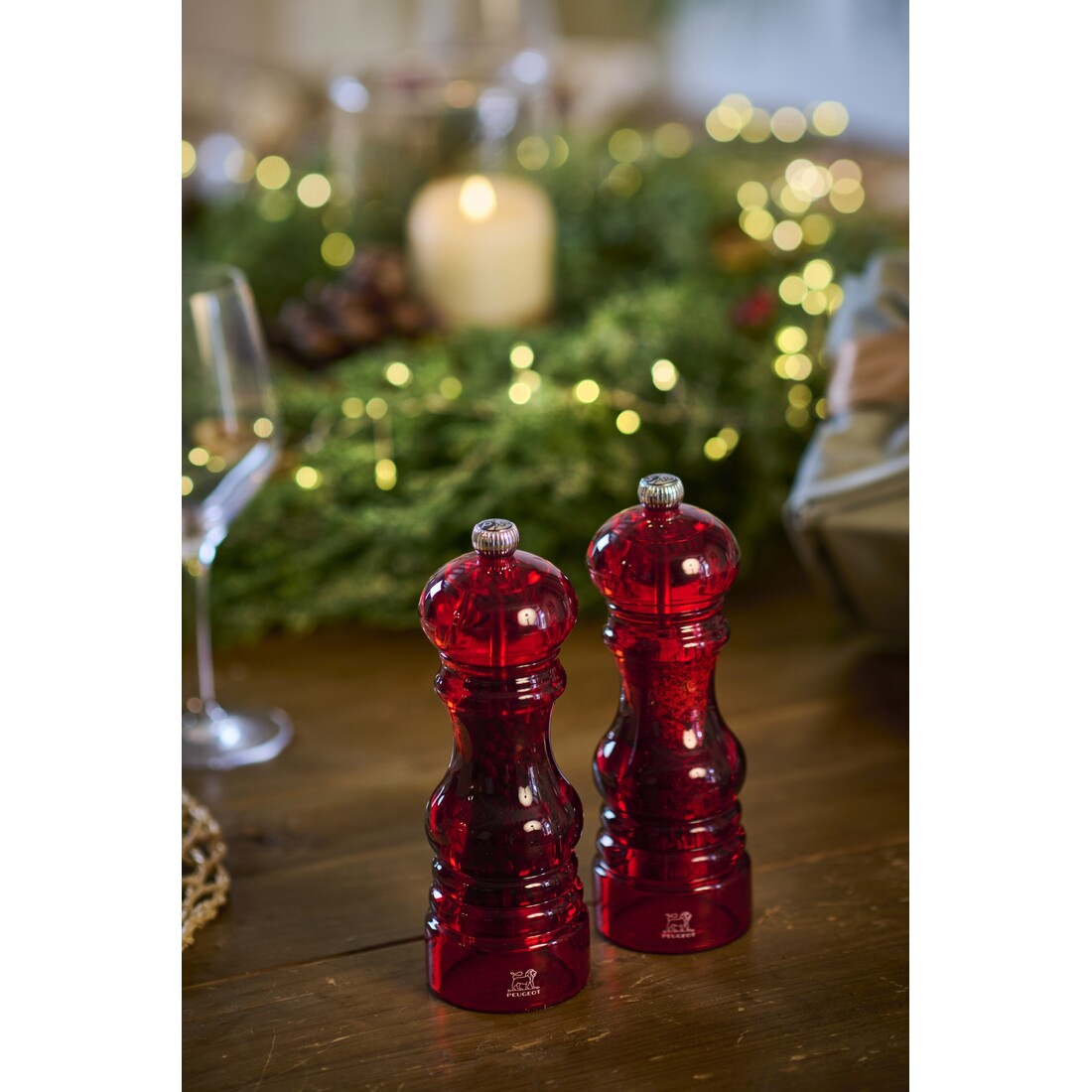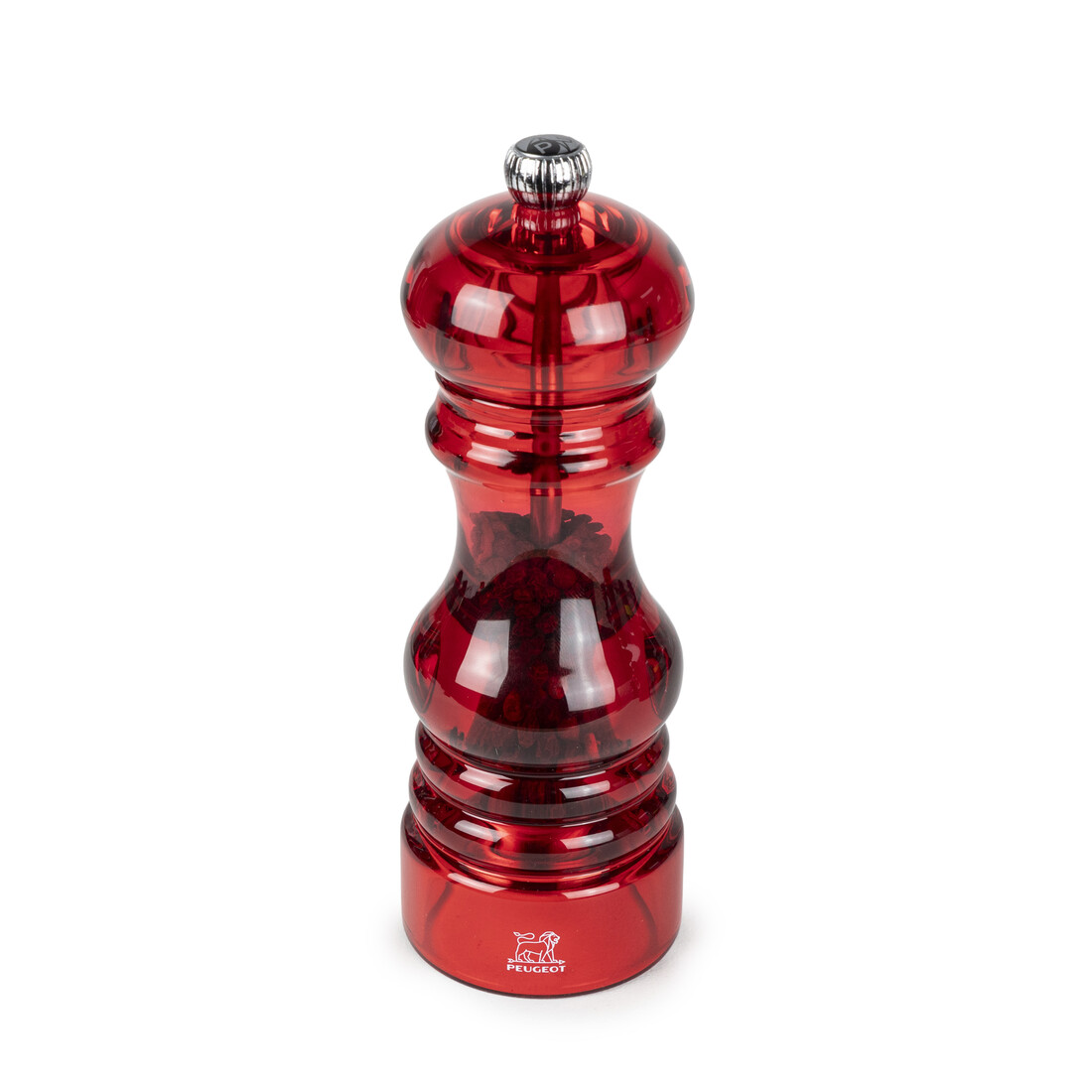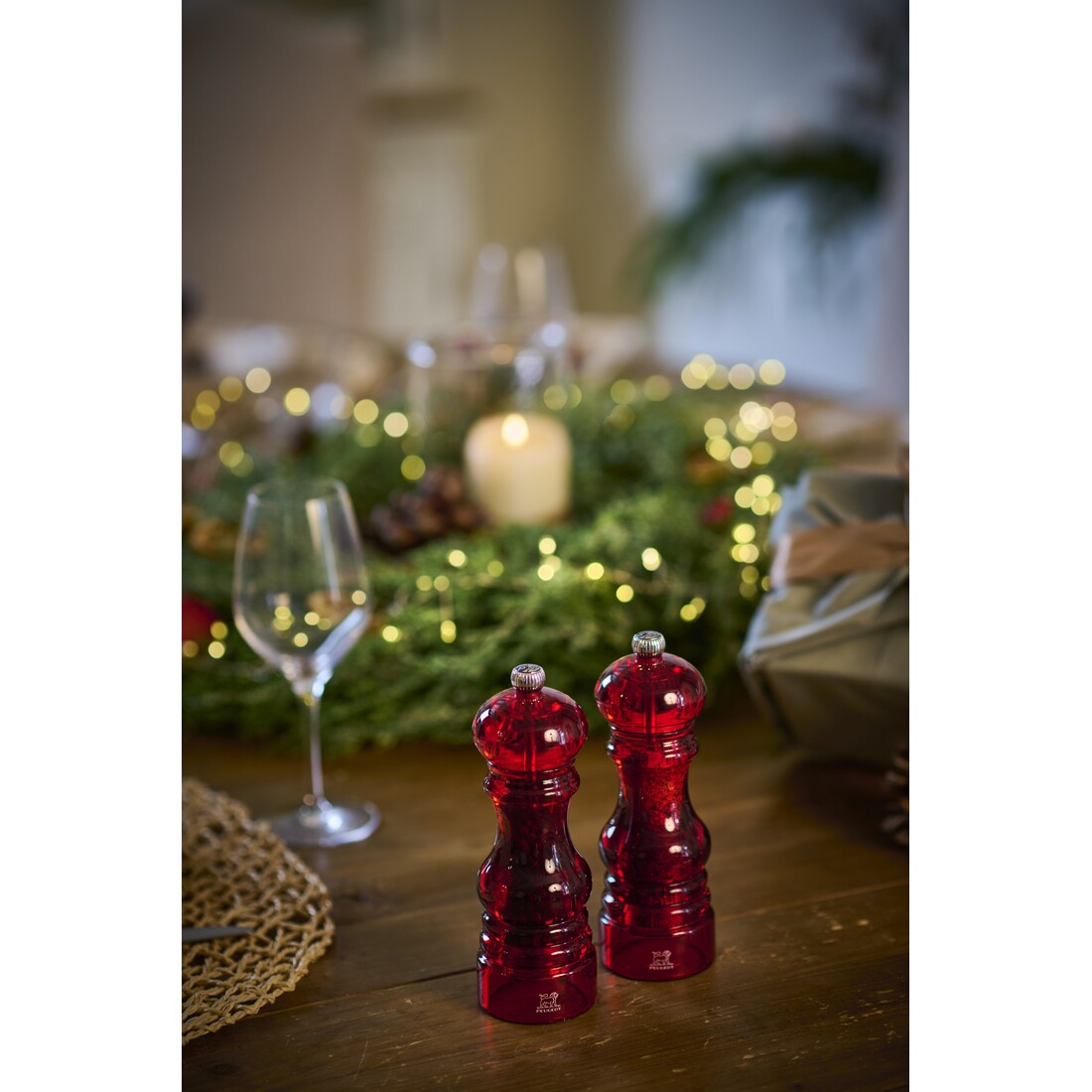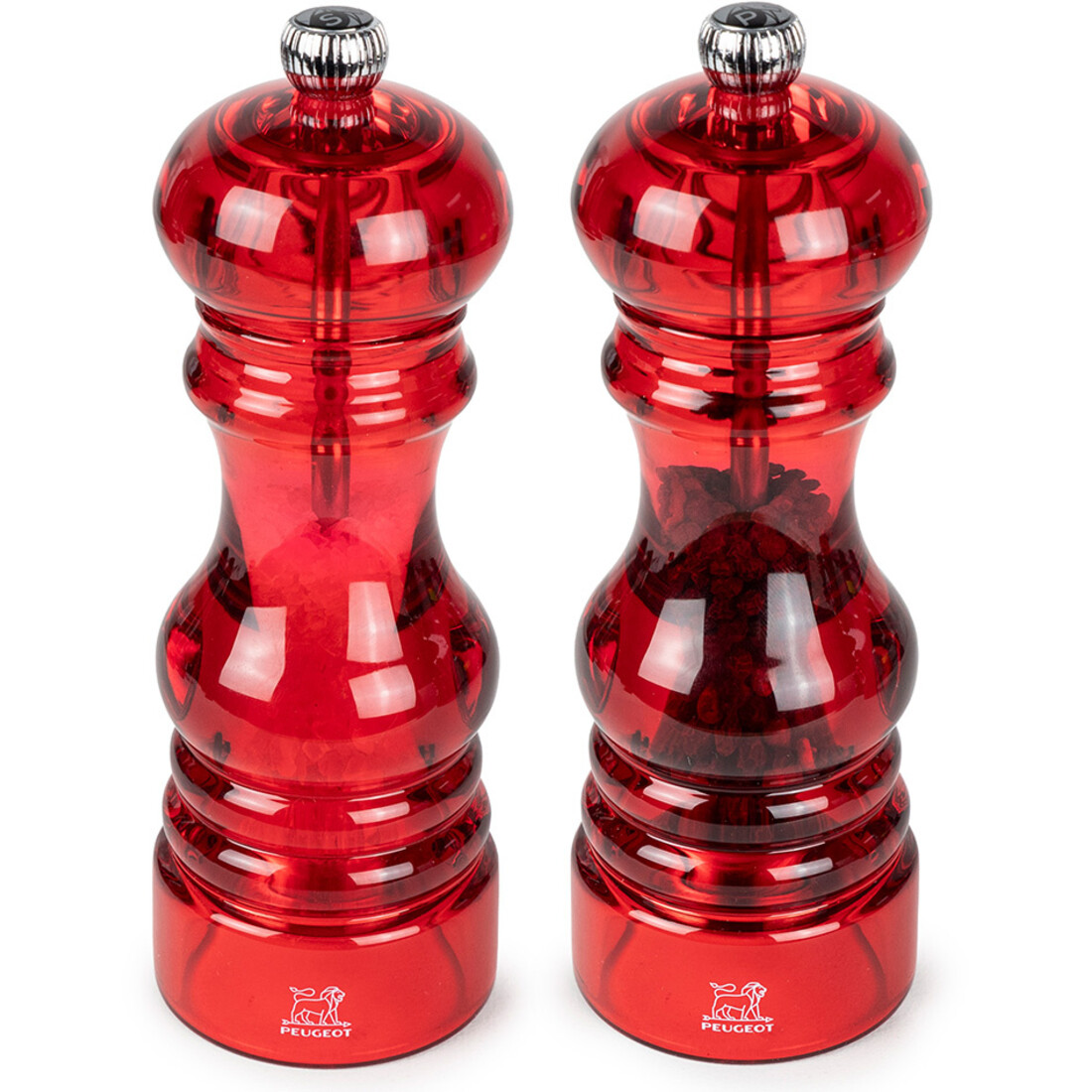 Breng functionaliteit en stijl samen met dit duo van een peper- en zoutmolen van Peugeot, uitgevoerd in rood acryl. De transparante behuizing maakt het eenvoudig om te zien hoeveel peper of zout er nog aanwezig is, terwijl de rode kleur een rustige maar opvallende uitstraling op tafel en in de keuken geeft. Dit Peugeot duo combineert betrouwbaarheid, praktische bruikbaarheid en een tijdloos ontwerp. Een complete set die direct klaar is voor gebruik in de keuken of op tafel.