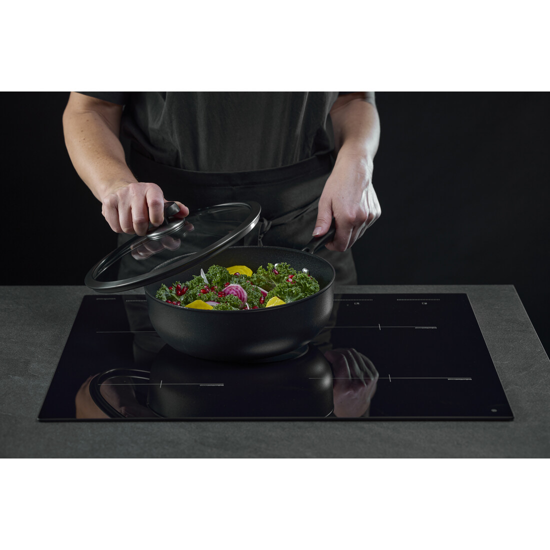 De hapjespan warmt snel en gelijkmatig op, wat zorgt voor constante resultaten. Het moderne zwarte design maakt van jouw keuken een stijlvolle plek om te koken. Dankzij de ergonomische handgrepen ligt de pan stevig in de hand, ook als deze goed gevuld is. Na gebruik maak je de pan eenvoudig schoon. Deze pan is geschikt voor alle kookplaten, inclusief inductie, en is daarnaast ook ovenbestendig tot 250 °C.
