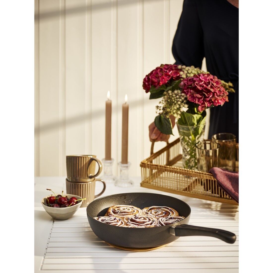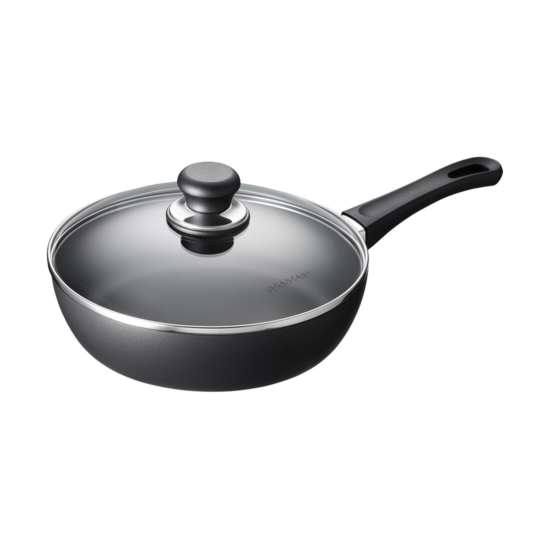 Met deze hapjespan of sauteerpan van Scanpan maak je de meest uiteenlopende gerechten. Dankzij de hoge randen zijn deze pannen ideaal voor pasta’s, curries of stoofschotels. Wordt geleverd inclusief deksel.Met een Scanpan Classic pan haal je een hoogwaardige pan in huis die keer op keer een perfect bakresultaat geeft. De pannen zijn gemaakt van hoogwaardige materialen en geschikt voor alle warmtebronnen. Dankzij de dikke bodem wordt warmte gelijkmatig verdeeld en krijg je een mooi egaal bakresultaat. De kunststof handgreep wordt bevestigd met een gepatenteerd sluitsysteem dat geen schroeven of klinknagels gebruikt. Dit zorgt ervoor dat de handgreep niet na verloop van tijd los gaat zitten.Scanpan Classic Induction pannen zijn voorzien van een Stratanium antiaanbaklaag. Deze uiterst sterke laag is ovenbestendig tot 260 graden, 30% duurzamer en PFAS vrij. De pannen zijn verkrijgbaar in diverse maten. Deze uitvoering heeft een diameter van 24cm.