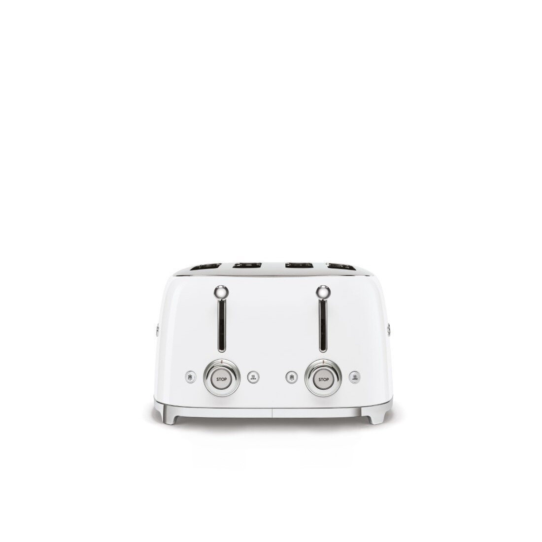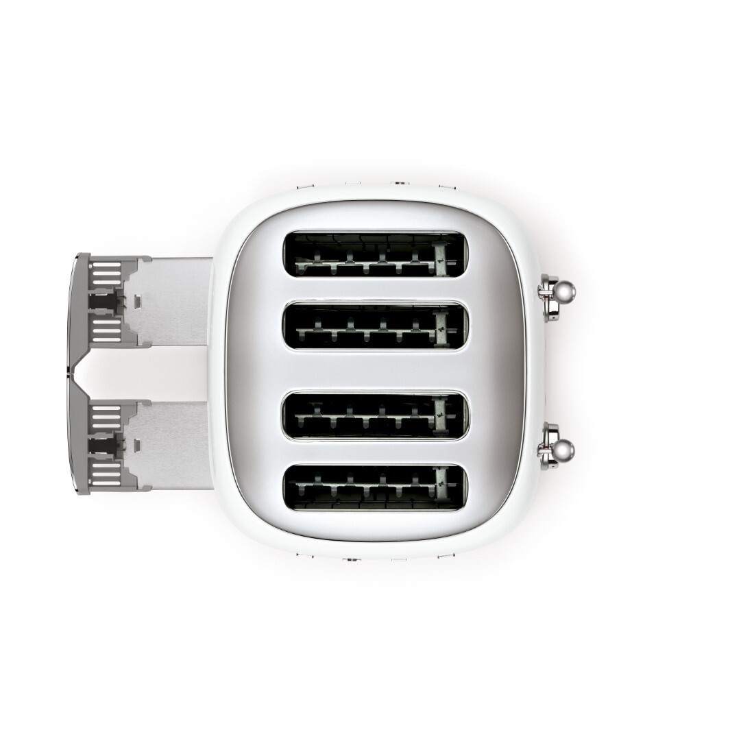 De TSF03 is een broodrooster van SMEG met een moderne look. Het broodrooster heeft vier brede sleuven en een uitneembare kruimellade. Hierdoor is het apparaat geschikt voor 4 boterhammen.