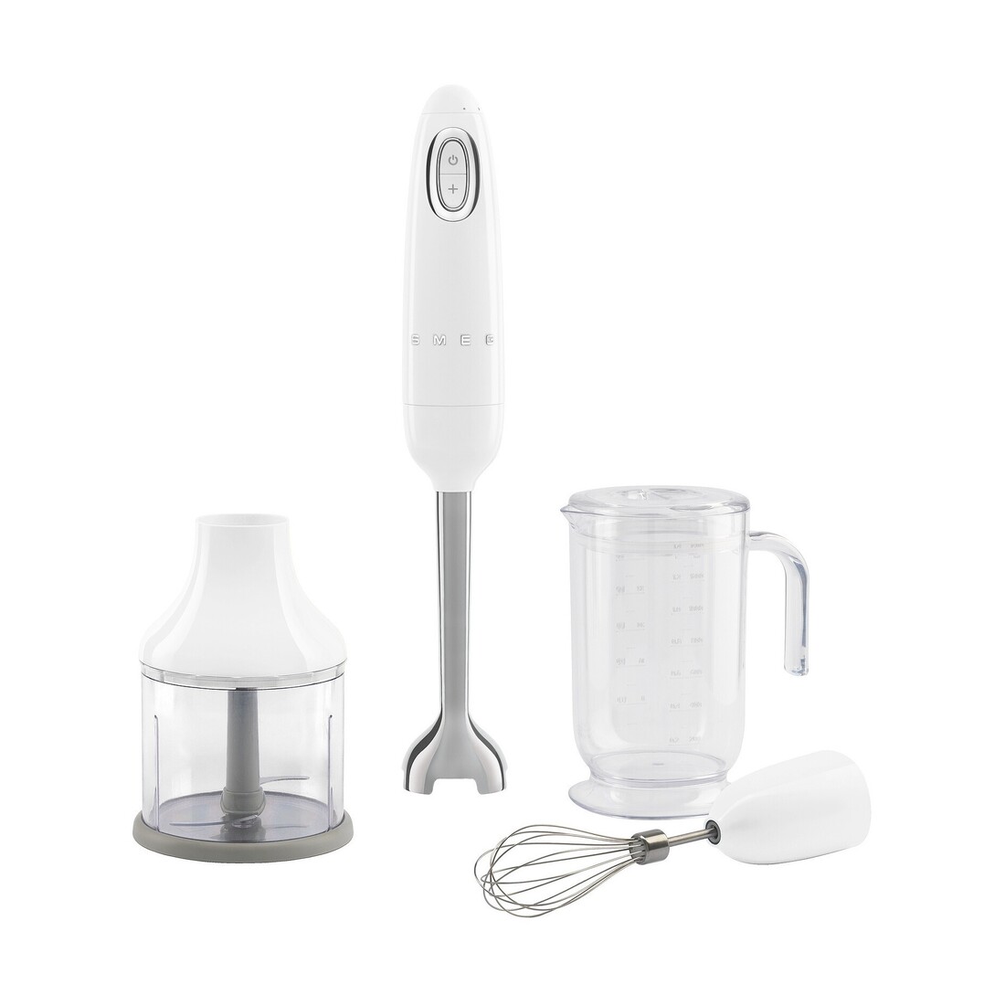 De SMEG Staafmixer met accessoires biedt krachtige prestaties en veelzijdigheid, perfect voor elke keuken. Met de meegeleverde accessoireset, bestaande uit een maatbeker, draadgarde en chopper, bereid je eenvoudig verschillende gerechten, van romige soepen tot luchtige desserts. Dankzij de variabele snelheidsinstellingen en de turbo-functie heb je altijd volledige controle over het eindresultaat. Of je nu voorzichtig wilt mengen of snel wilt pureren, deze staafmixer past zich moeiteloos aan jouw behoeften aan.