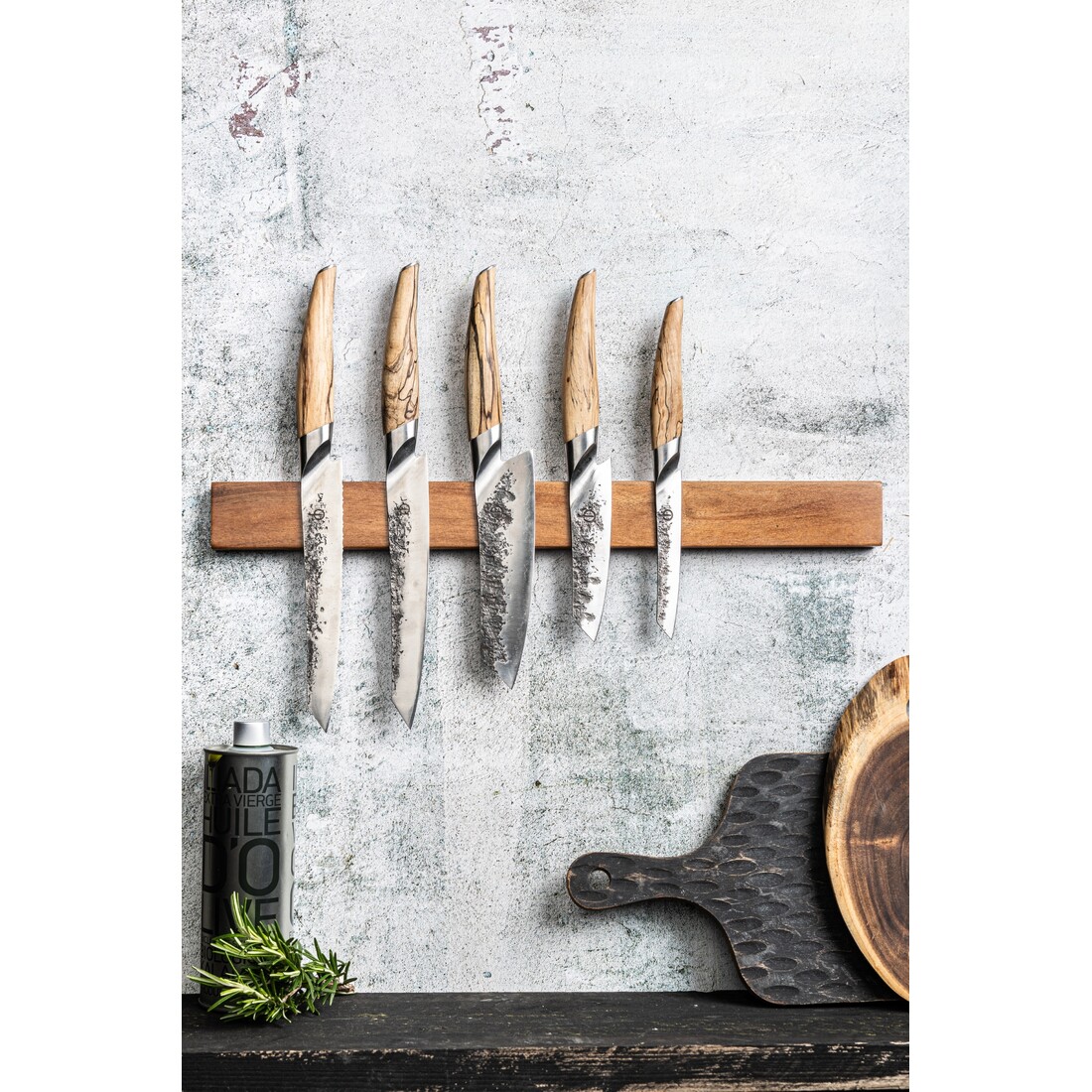 Deze magneetstrip van Style de Vie is gemaakt van acaciahout. De magneetstrip heeft een lengte van 50cm en biedt plek voor circa 10 messen (afhankelijk van het type mes). De magneetstrip kan eenvoudig met twee meegeleverde schroeven worden bevestigd. Eventueel kan de strip ook worden door middel van montagelijm worden bevestigd.