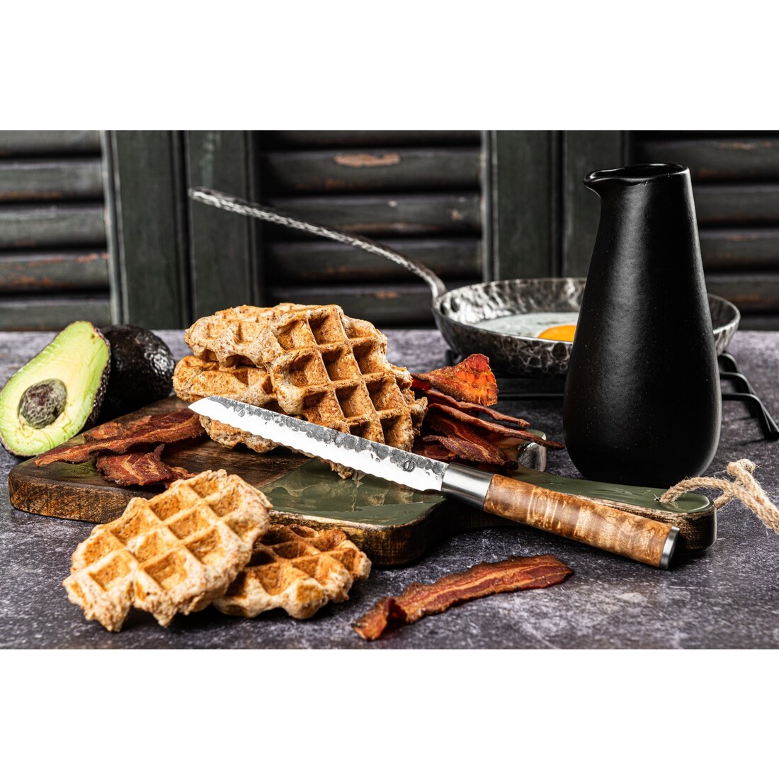 Of het nu gaat om bakken, koken of het dagelijkse snijwerk: dit mes biedt kracht, controle en stijl in één. Eenmaal geprobeerd, en het wordt je vaste favoriet voor elke dag.