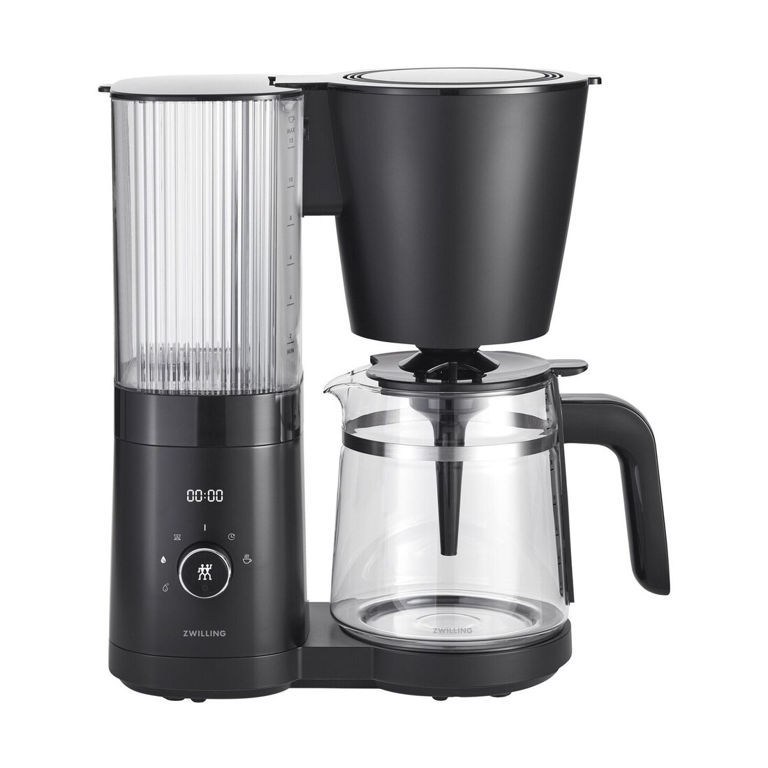 Met het zwarte Zwilling Enfinigy koffiezetapparaat zet je de lekkerste filterkoffie voor jezelf en je gasten. Het apparaat beschikt over een bloomingfunctie wat zorgt voor een betere smaak en aroma. Daarnaast heeft het koffiezetapparaat een uitneembare aromatrechter, wat zorgt voor een perfecte menging. Met de warmhoudplaat hou jij je koffie tot wel 40 minuten lang warm. Heb jij een belangrijk overleg of wil je dat als je wakker wordt meteen genieten van een heerlijke bak koffie? Met de timerfunctie van het zwarte Zwilling Enfinigy koffiezetapparaaten is het mogelijk om de machine van tevoren in te stellen. De SCA heeft het koffiezetapparaat voorzien van een certificaat wat inhoudt dat de machine voldoet aan hun strenge en hoge eisen.Vergeet jij gemakkelijk je machine te ontkalken? Geen probleem, dit koffiezetapparaat helpt je hieraan herinneren en is eenvoudig te reinigen. Het Zwilling Enfinigy koffiezetapparaat is gemakkelijk te bedienen en zelfs te gebruiken bij grote groepen. Het waterreservoir heeft een inhoudt van 1,5 liter. Wat betekent dat een volle pot geschikt is voor ongeveer 12 kopjes. Dit luxe koffiezetapparaat is verkrijgbaar in de kleuren zwart en RVS!