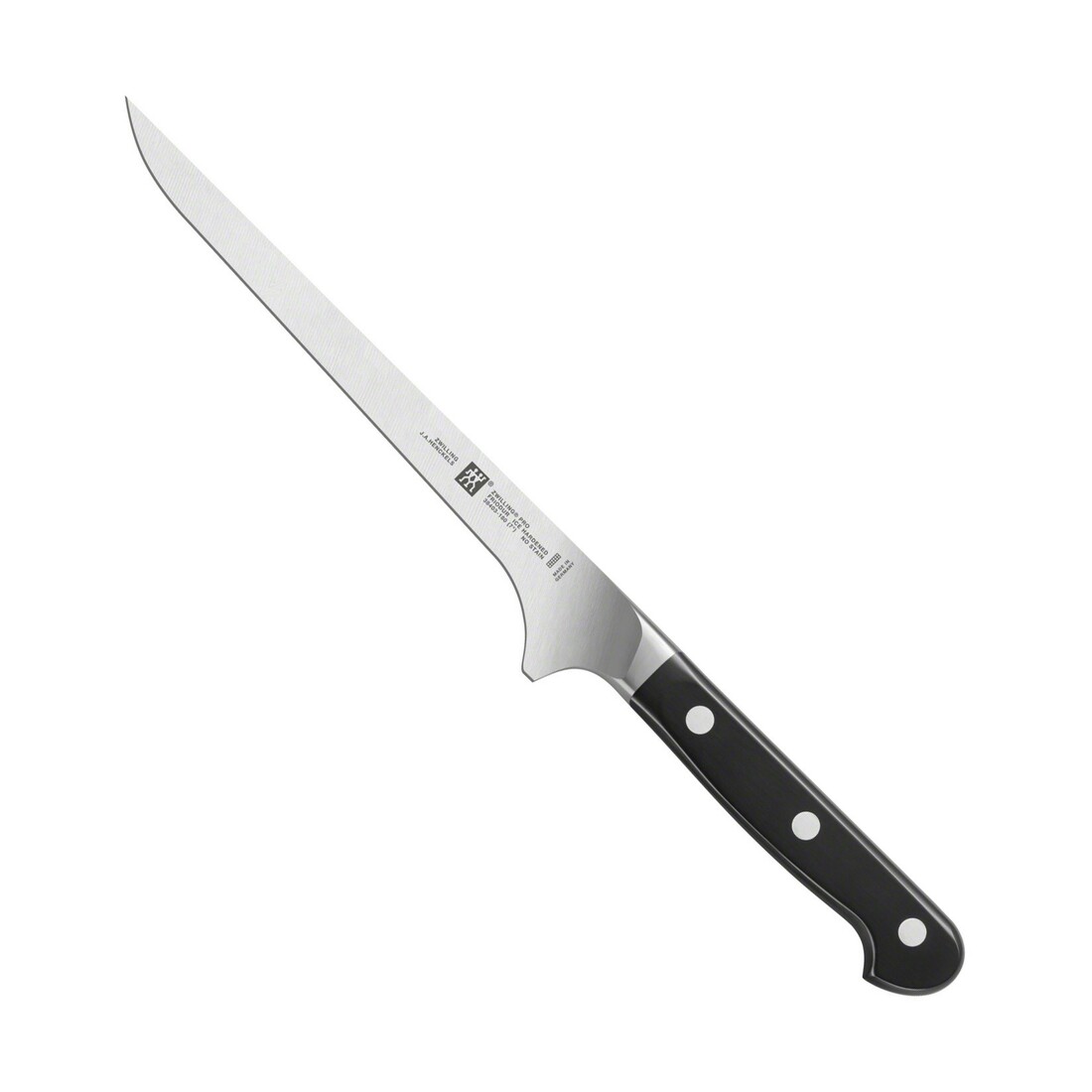 Met dit Zwilling Pro fileermes van 18cm fileer je gemakkelijk vlees en vis. Met het flexibele dunne lemmet snijdt met extra precisie en controle evlak langs het vel heen. De Pro serie van Zwilling een zeer uitgebreide serie met een groot aantal messen. De messen zijn de perfecte harmonie tussen innovatieve technologie, traditionele optiek en absolute precisie. De handvatten zijn gemaakt van van stevig kunststof met drie klinknagels. De halve krop is ergonomisch gevormd, waardoor de messen voortreffelijk in de hand liggen. Zwilling heeft speciaal roest vrij staal ontwikkeld. Dit roestvrij staal, FRIODUR genoemd, ondergaat een speciaal ijshardingsproces. Hierdoor krijgt het staal extra stevigheid en scherpte. De messen zijn gesmeed volgens het Sigmaforge principe. Dit betekend dat elk mes met uiterste precisie wordt gesmeed uit een enkel stuk staal voor perfecte balans en ergonomie